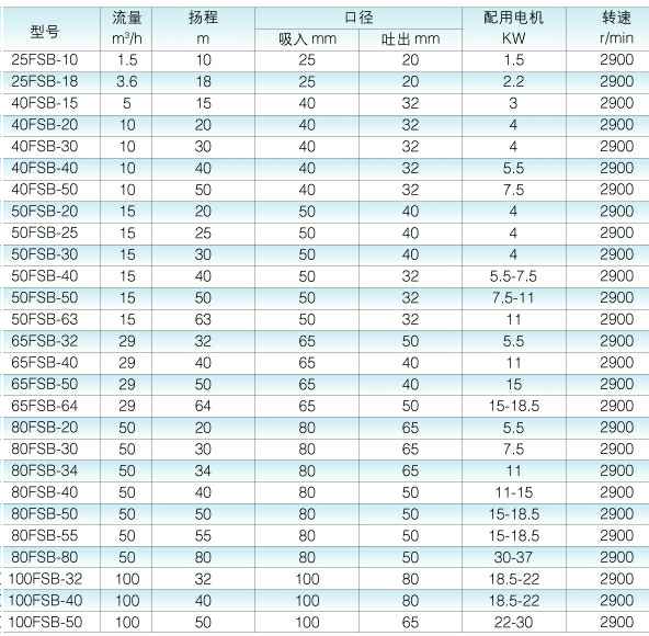 FSB、FSB-L系列氟塑料合金离心泵,具有特强的耐腐蚀性能,且机械强度高、不老化、无毒素分解,可输送任意浓度的酸、碱液、氧化剂及其它腐蚀性介质。